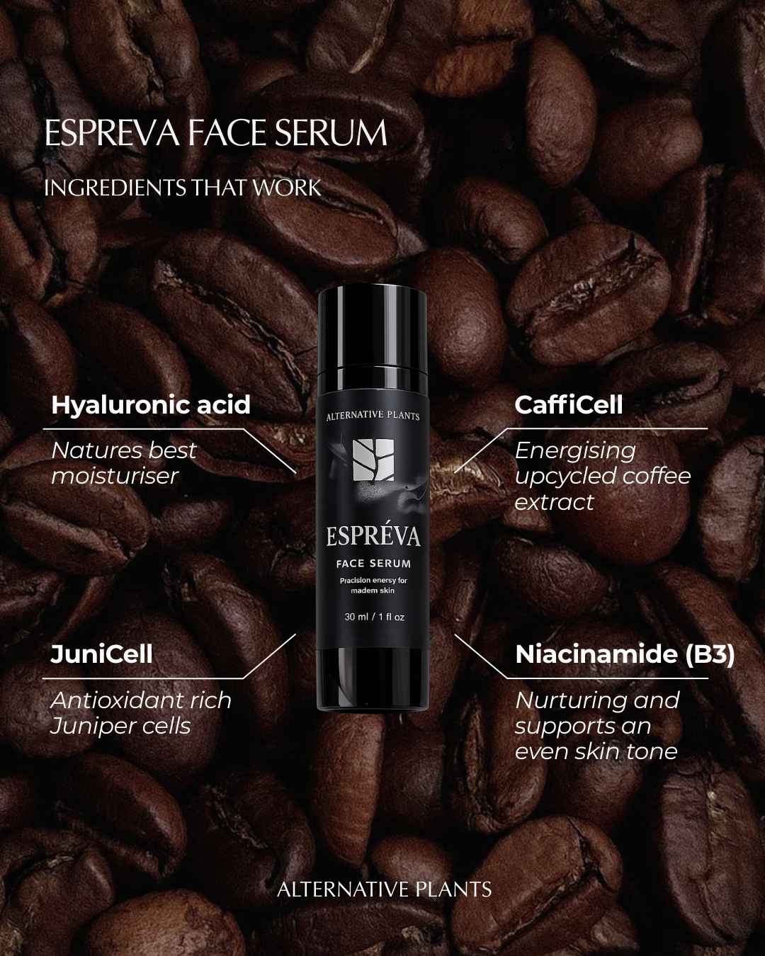 ESPRÉVA is a precision-formulated serum that revitalizes skin at the cellular level, supporting energy metabolism, hydration, and barrier strength. Powered by CaffiCell™, hyaluronic acid, JuniCell™, and niacinamide, it helps promote energized, balanced, and visibly renewed skin.